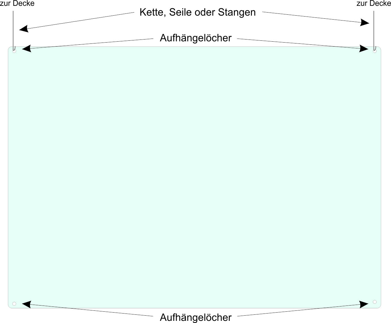 Klare, durchsichtige Platte zum Abhängen von der Decke.