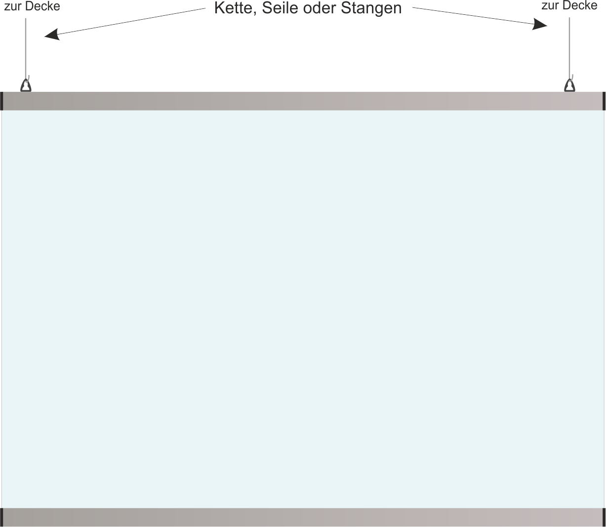Klare, durchsichtige Platte mit 2 Alu-Klappleisten, zum Abhängen von der Decke.