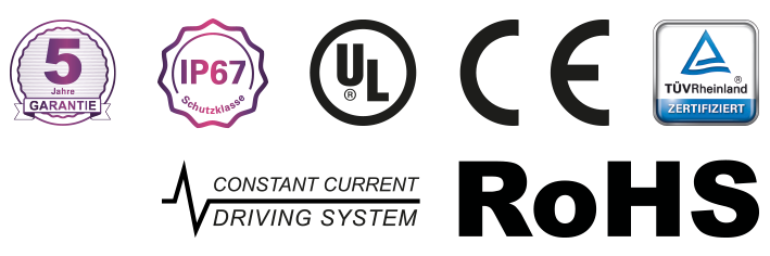 Zertifizierung UL, CE, RoHS, TÜV